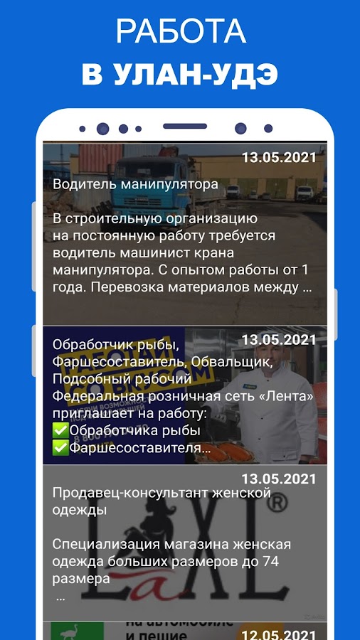 При помощи нашего приложения легко найти именно ту вакансию в Улан-Удэ, которая более всего подходит именно вам. Мы предлагаем на выбор трудоустройство для женщин и для мужчин, с опытом и без опыта работы. Есть варианты с ежедневной оплатой по итогам дня, с проживанием на территории работодателя.