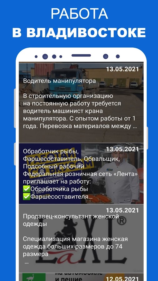 При помощи нашего приложения легко найти именно ту вакансию в Владивостоке, которая более всего подходит именно вам. Мы предлагаем на выбор трудоустройство для женщин и для мужчин, с опытом и без опыта работы. Есть варианты с ежедневной оплатой по итогам дня, с проживанием на территории работодателя.