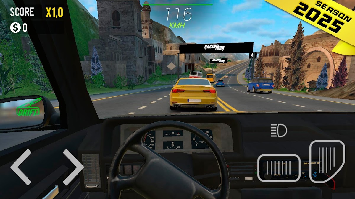 Racing in Car 2021 — это новый реалистичный симулятор вождения автомобиля. Покупайте новые современные автомобили с невероятно детализированным интерьером и экстерьером. Двигайтесь на высокой скорости по шоссе и обгоняйте трафик, чтобы заработать деньги. Используйте внутренний и внешний вид камеры. Почувствуйте себя за рулем настоящего современного автомобиля!