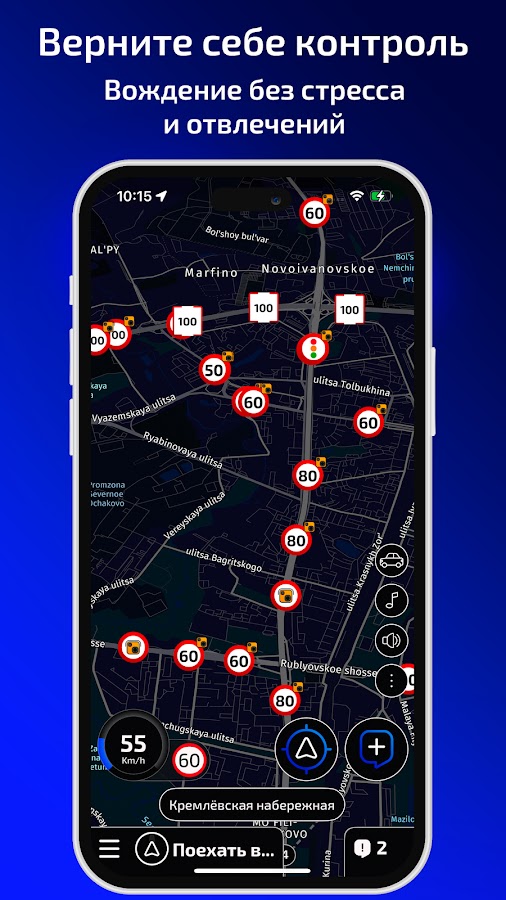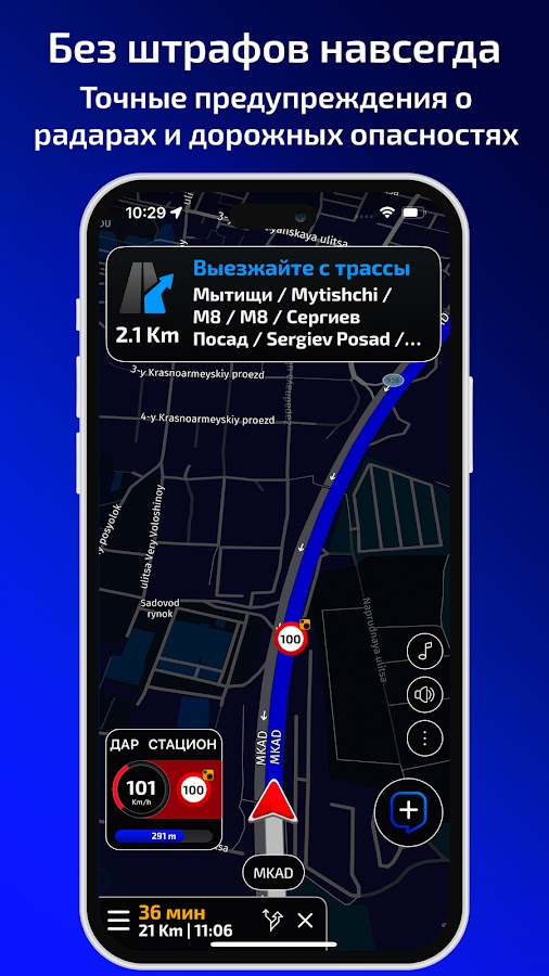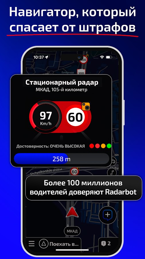 Водите спокойно и уверено, не подвергая риску свои водительские права и безопасность. Избегайте штрафов благодаря четким и своевременным оповещениям обо всех радарах: