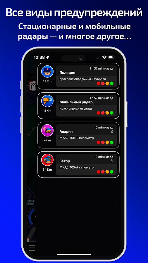 — Оповещения только по направлению движения. Приложение не сообщает о радарах, расположенных в обратном направлении или вне маршрута.