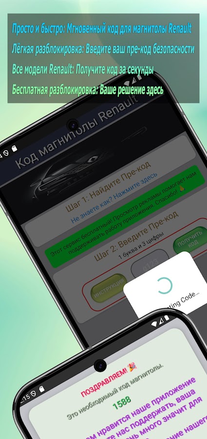 Ваша магнитола Renault заблокирована и запрашивает «CODE»? Попрощайтесь с дорогими и долгими поездками к дилеру! «Генератор радиокодов — Renault» — это бесплатное, быстрое и надежное решение, которое вам нужно, прямо в вашем кармане.