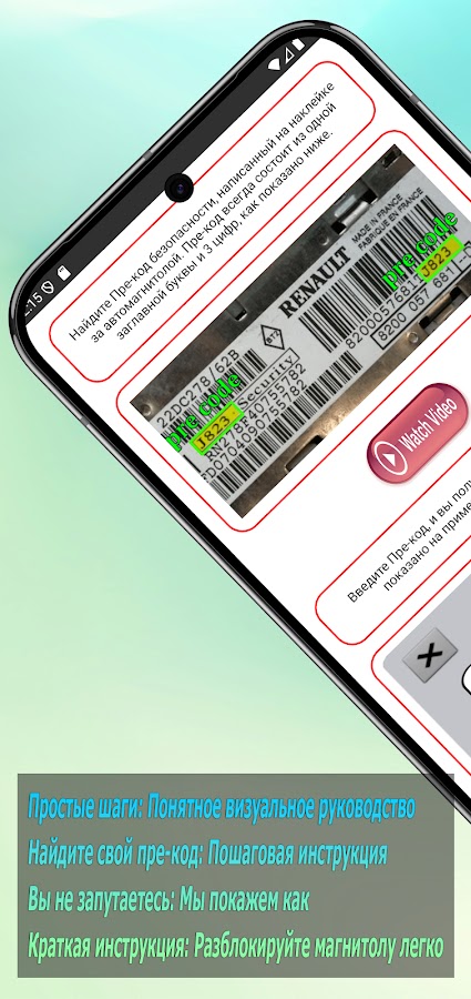 1. Найдите Пре-код: Снимите магнитолу с панели, чтобы найти наклейку безопасности. Пре-код состоит из 1 буквы и 3 цифр (например, A123).