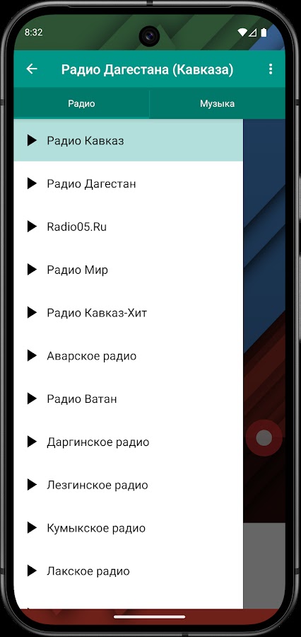Программа для прослушивания радио и песен Дагестана(Кавказа).
