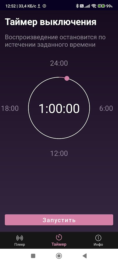 Приложение поддерживает автозапуск, плавный старт, работу в фоновом режиме. Есть будильник, таймер отключения. Встроенный эквалайзер позволяет настроить звук в соответствии с индивидуальными предпочтениями.