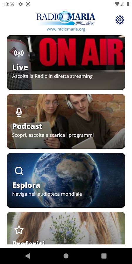 «Radio Maria Play» — это приложение, которое позволяет вам слушать Radio Maria в прямом эфире по всему миру бесплатно и всего за несколько простых кликов. Радиостанции из более чем 60 стран доступны более чем на 50 языках.