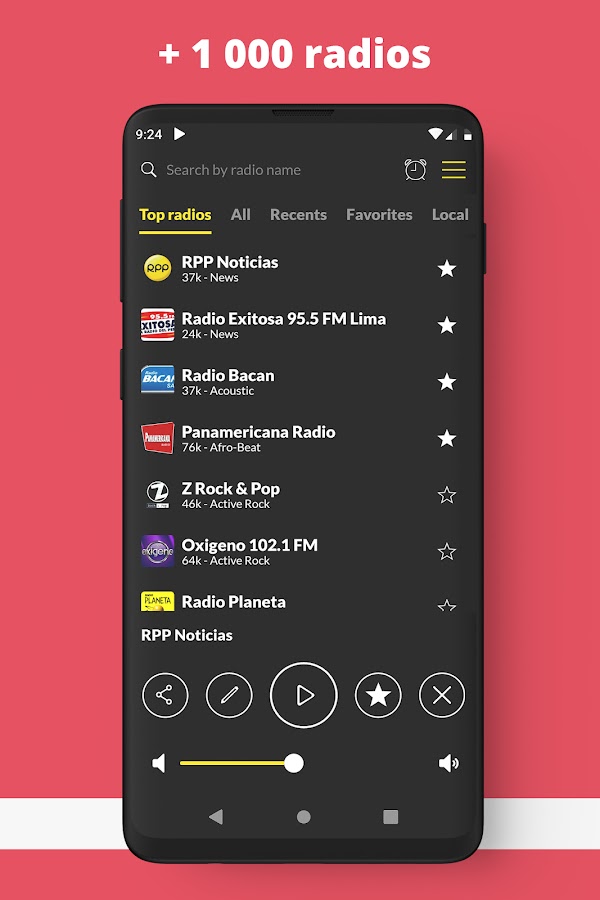 Благодаря простому в использовании, быстрому и современному интерфейсу Radio Peru предлагает вам лучший опыт онлайн-прослушивания без подписки или оплаты для доступа к приложению! Также воспользуйтесь нашим виджетом для еще более приятного и простого доступа и прослушивания!