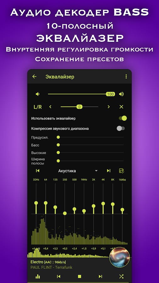 Специальный аудио декодер BASS© с 32-битным качеством звука!