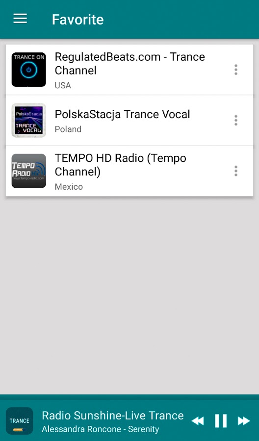 В приложении: «Радио транс-музыка» мы постарались добавить все тематические радиоприемники, транслирующие транс-музыку. Если вы думаете, что радиостанция отсутствует, просто напишите мне по электронной почте.