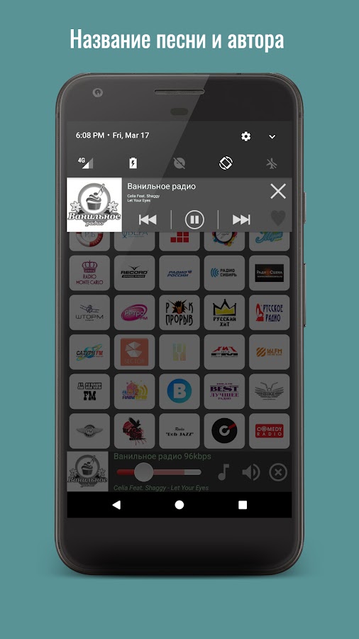 ► Информация о текущей композиции, если это поддерживается радиопотоком