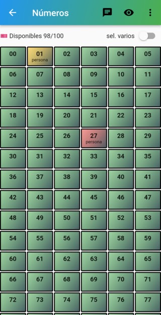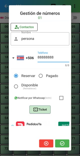 Создавайте чековые книжки для своих розыгрышей и управляйте числами простым способом, вы можете легко узнать, сколько номеров доступно, а какие уже заняты, вы можете определить, зарезервированы они или полностью заняты, при желании вы можете открыть приложение whatssap для уведомления информации или вы также можете поделиться билетом в виде изображения.