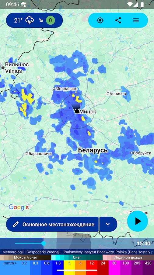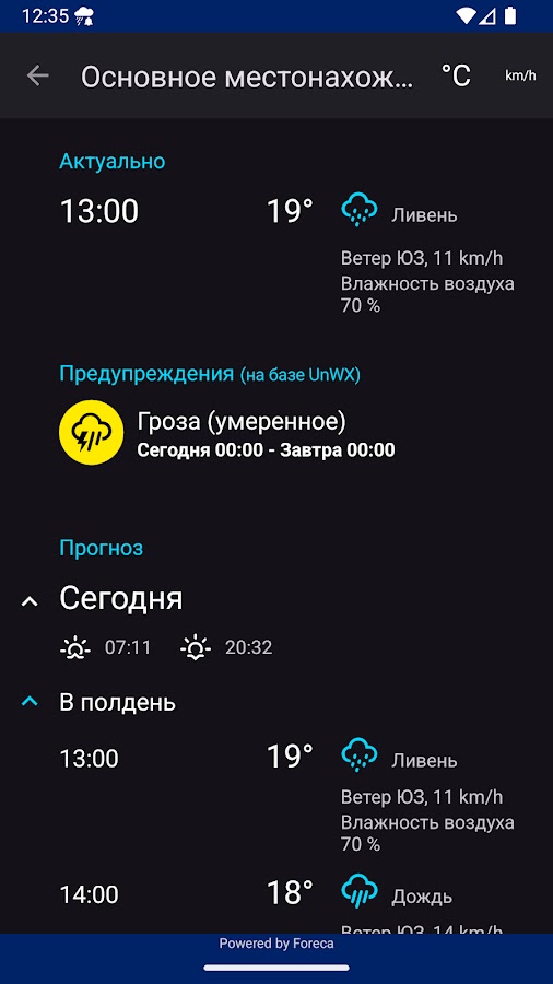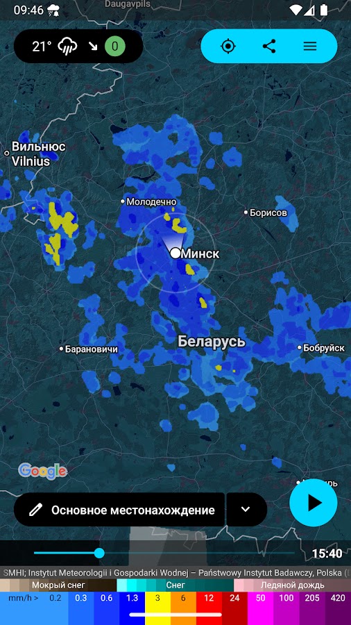 Это погодное приложение предупреждает, когда приближается дождь. Предупреждения—это надёжный краткосрочный прогноз на основе почти «живых» данных. Точнее и стабильнее, чем обычный прогноз.