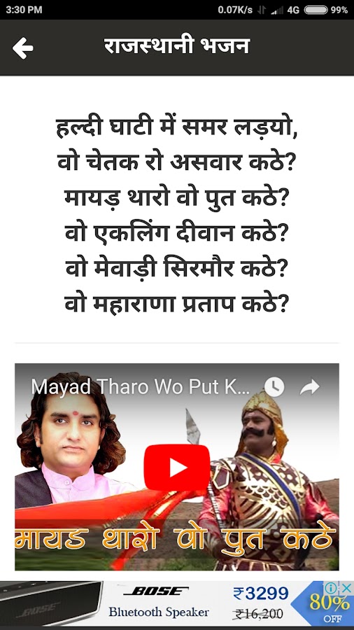 Rajasthani Бхаджан Diary — Rajasthani и Marwadi Бхаджан Тексты песен с видео.