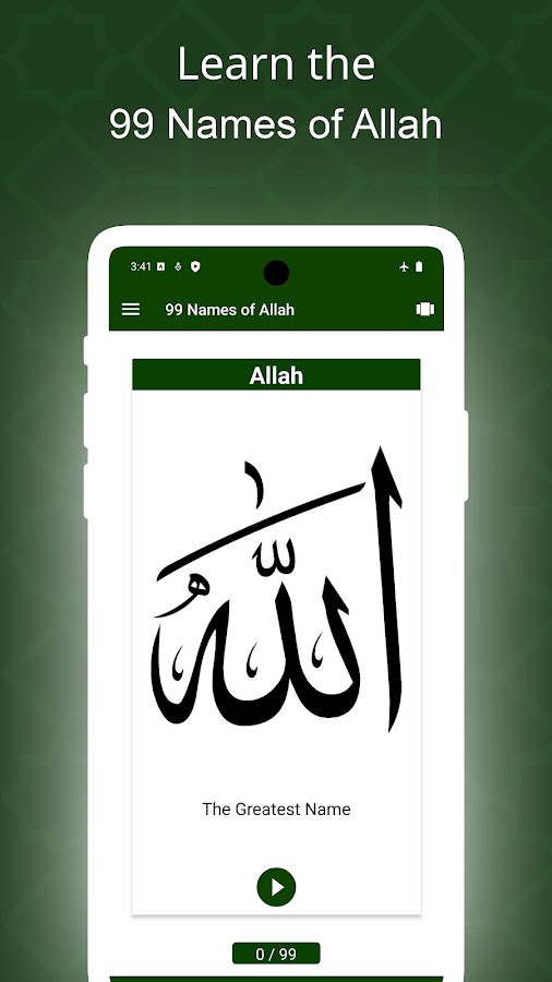 Изучите 99 имен Аллаха, упомянутых в Коране и Сунне Пророка (да благословит его Аллах и приветствует). Приложение включает в аудиозаписи, транслитерации и переводы для облегчения понимания и обучения.