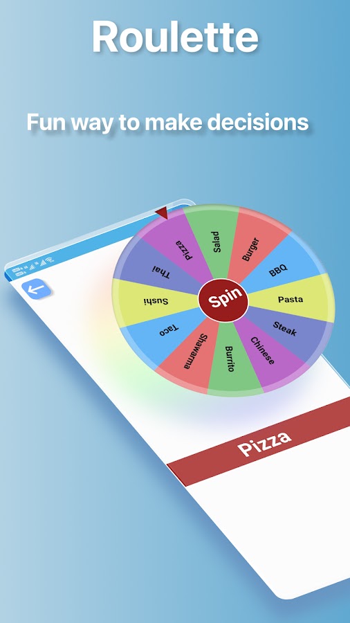 — решите, что съесть при запуске, составив список блюд и крутя рулетку.