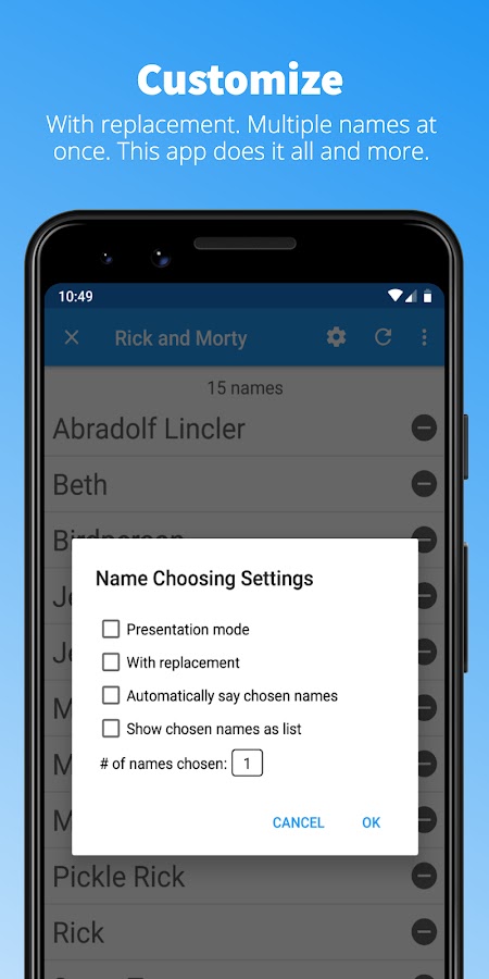 Скачайте приложение Random Name Picker для Android бесплатно - последняя версия (4.3.17) уже доступна для установки на ваш телефон или планшет.