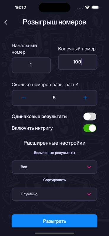 📢 Розыгрыши, проводимые в приложении, касаются только случайной генерации чисел, имен и команд, и не имеют никакого отношения к конкурсам, акциям или распределению денежных средств и призов.