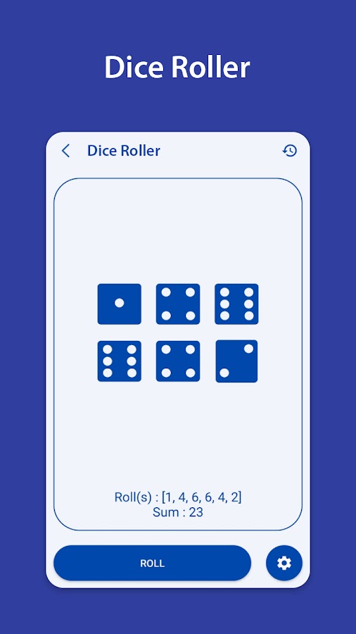 Вы выберете от 1 до 6 кубиков и нажмете кнопку ROLL, результаты будут быстро отображаться со счетом каждого кубика и общим счетом.