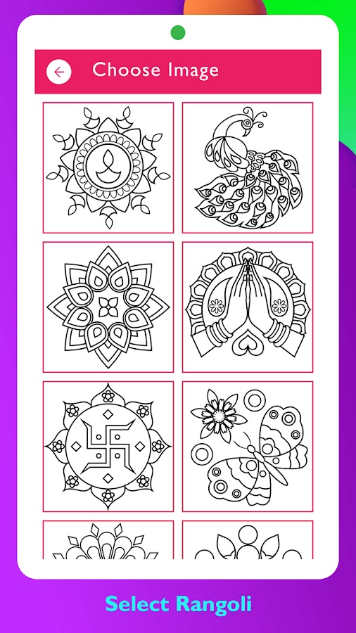 Rangoli Paint and Colors — отличная игра-раскраска для рисования красивых картинок Ранголи. Мы предоставляем прекрасную коллекцию рисунков дизайнов Ранголи.