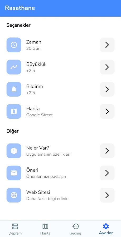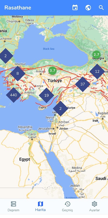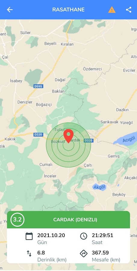* Возможность отображать землетрясения магнитудой 4,0 и выше, произошедшие в Турции и ее окрестностях с 1900 года, в соответствии с вашим местоположением на карте.