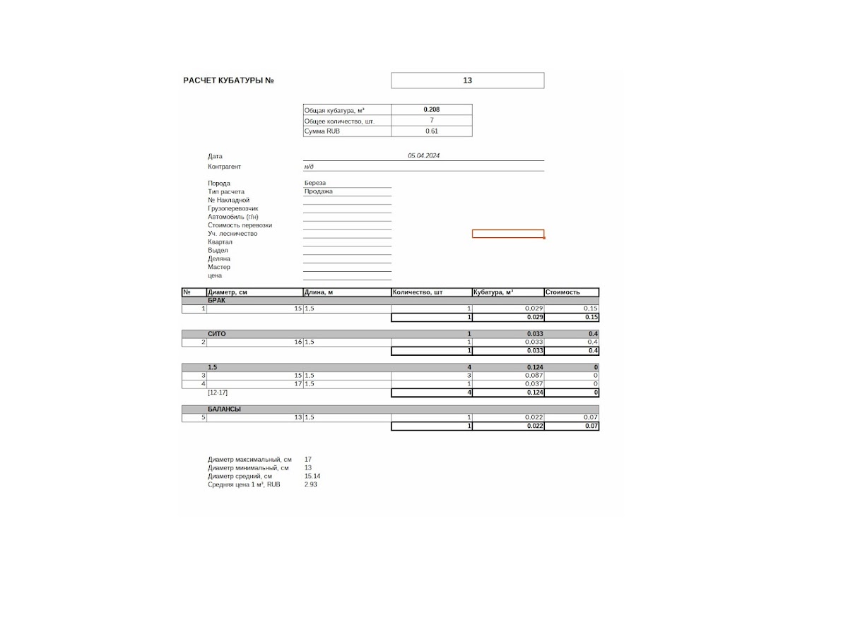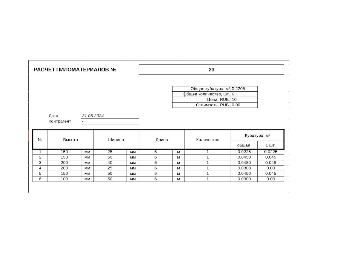 — расчет кубатуры пиломатериалов;