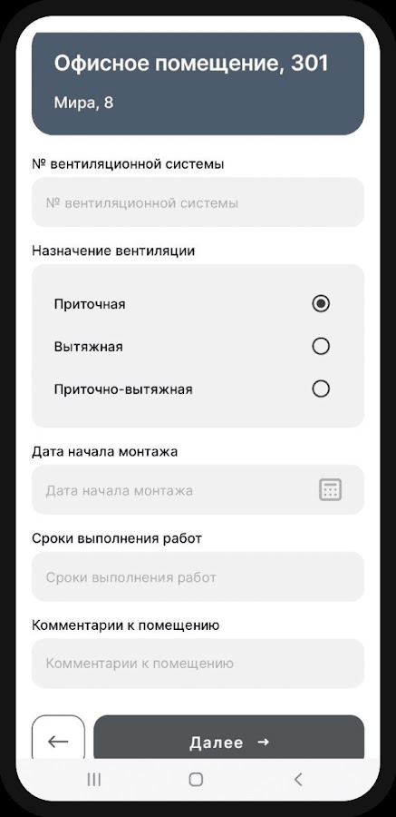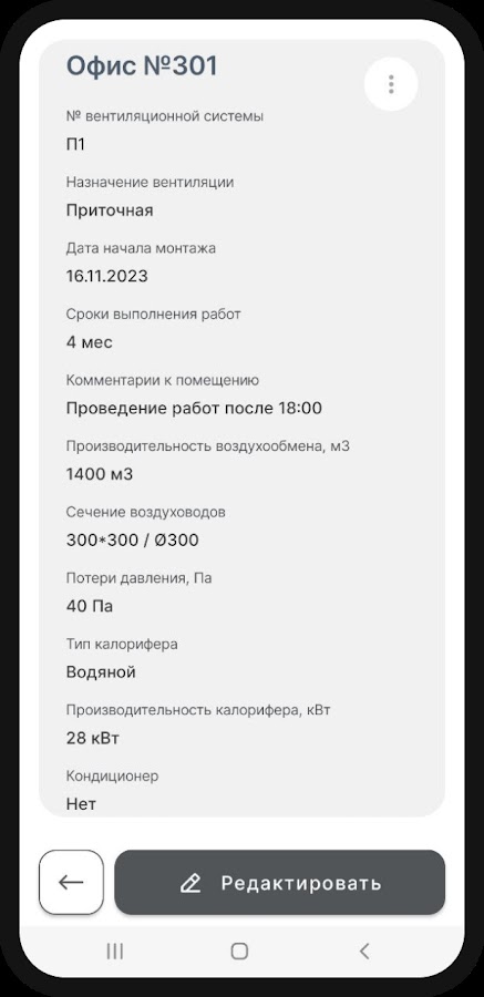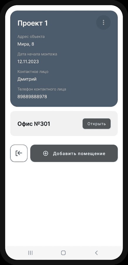 Также в приложении возможно создавать свои проекты, добавляя в них необходимое количество помещений и систем.