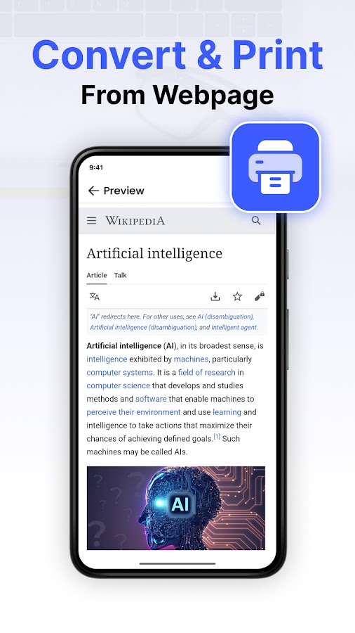 Универсальная печать: Печатайте напрямую с вашего устройства Android практически на любом струйном, лазерном или термопринтере.