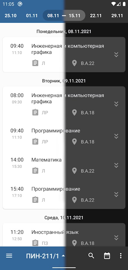 ⭐ Нет нужды копаться в полотнище текста — минималистичный дизайн позволит узнать всё о следующей паре за 10 секунд!