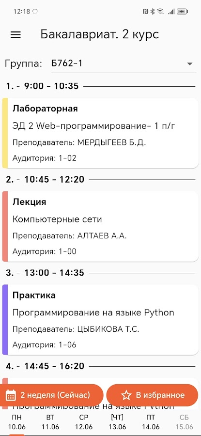 Расписание доступно оффлайн, определяет текущую неделю и может вывести избранное расписание при запуске.