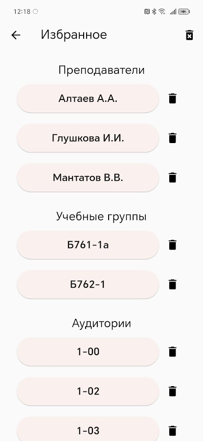 Также в приложении доступен поиск по учебной группе или преподавателю, и предусмотрена возможность просмотра расписания аудиторий университета.