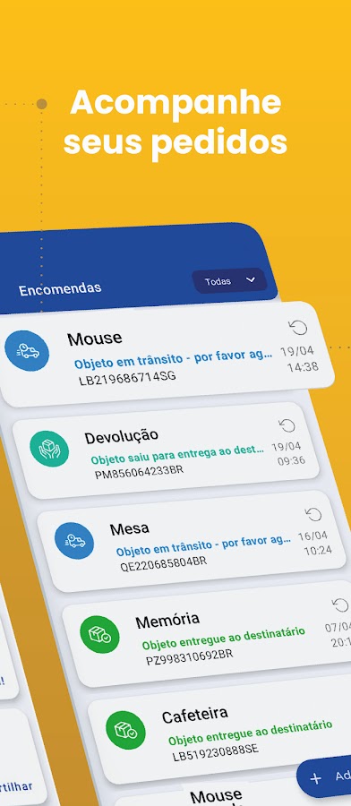 📣 ВНИМАНИЕ: Это приложение не имеет связи с оператором Correios. Это просто логистический объект, который может отслеживать перемещение национальных или международных объектов, от отправки до доставки посылки перевозчиком Correios, будь то PAC или Sedex.