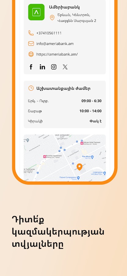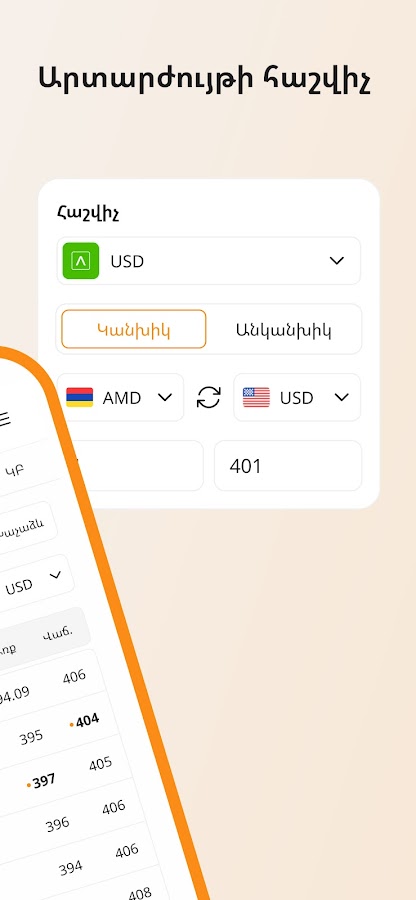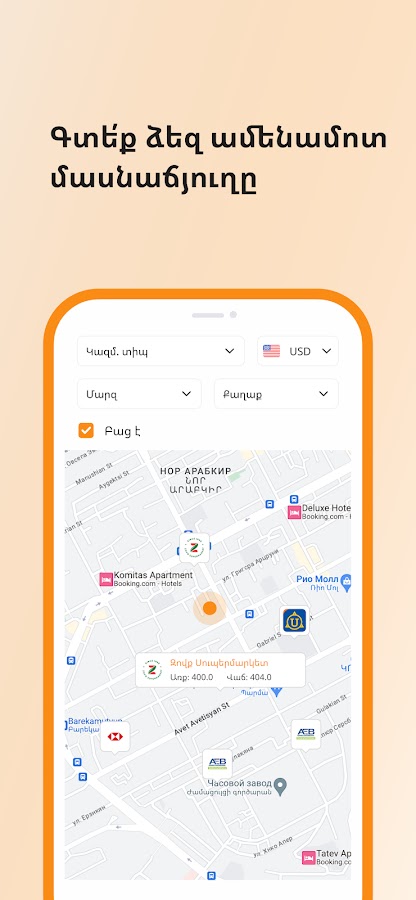 С помощью этого приложения вы будете получать информацию о последних обменных курсах, найти банк или обменный пункт предлагают лучший обменный курс, найти ближайшее отделение с контактной информацией, а также много другой полезной информации! Если вы делаете бизнес, ежечасно отслеживать денежные и валютные курсы безналичных и соответственно реагировать на колебания курса. Онлайн версия приложения является самым популярным бизнес веб-сайт в Армении, с более чем 40000 посетителей в день.