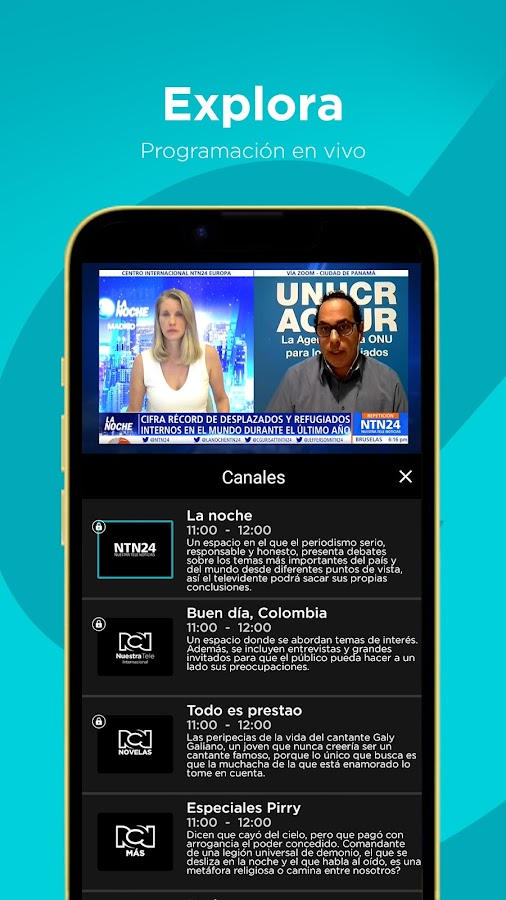 Будьте в курсе событий с NTN24 24/7 и четырьмя ежедневными новостными выпусками Noticias RCN. Освещение событий в Колумбии и мире: политика, экономика, спорт и многое другое.