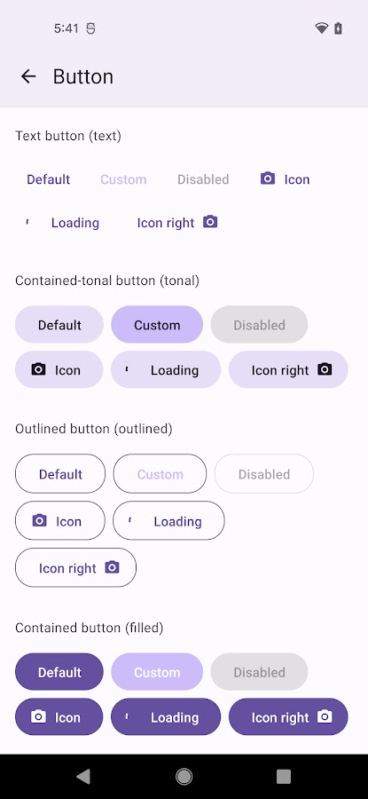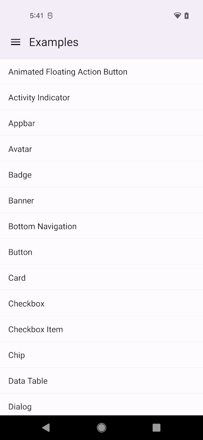 Демонстрационное приложение библиотеки React Native Paper. Он показывает доступные компоненты и позволяет опробовать их на производстве.