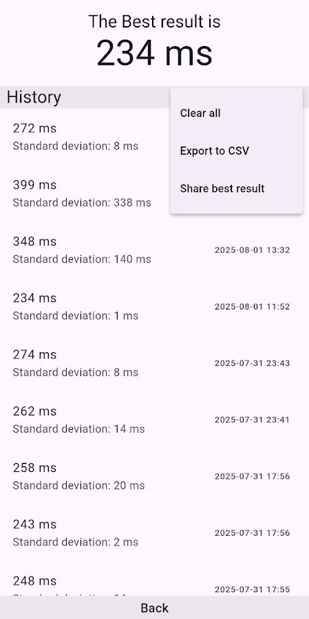 ⏱️ Приложение точно измеряет время между сменой цвета и касанием — это и есть время вашей реакции. После нескольких попыток вы увидите свой средний результат и стандартное отклонение, чтобы отслеживать свой прогресс и продолжать совершенствоваться.