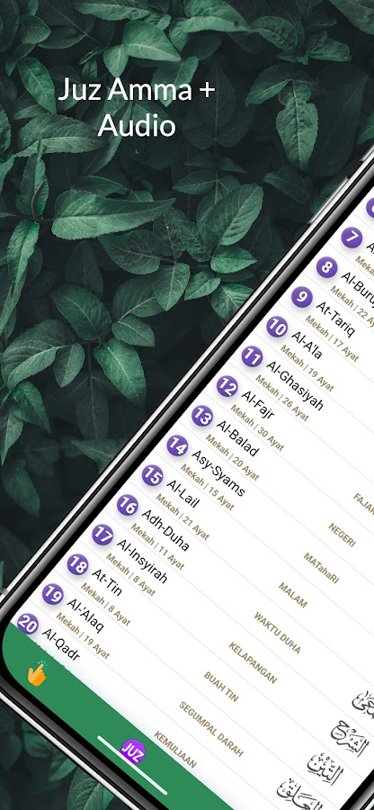 Приложение «Короткие суры Корана» включает в себя аудио: слушайте красивые декламации знаменитого Кари, следуя стихам в текст. Это поможет вам лучше понять декламацию, что укрепит вашу память.