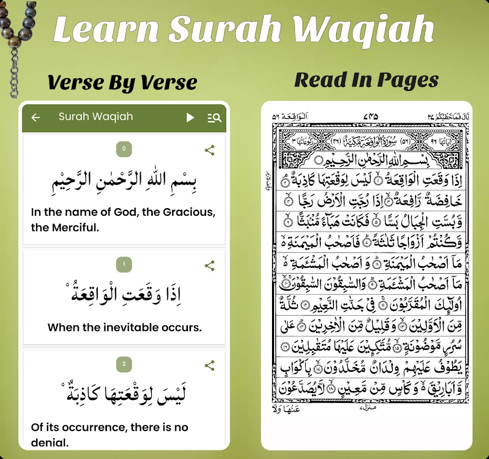— Чтение суры Вакиа онлайн защищает от бедности и способствует увеличению удела.