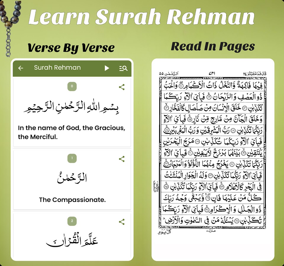 — Сура Ар-Рахман – прекрасное напоминание о милостях Аллаха. Чтение суры Ар-Рахман онлайн приносит сердцу покой, утешение и исцеление.