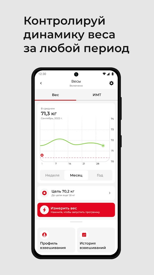 Сохранять параметры взвешиваний на умных напольных весах и отслеживать свой прогресс в удобных графиках