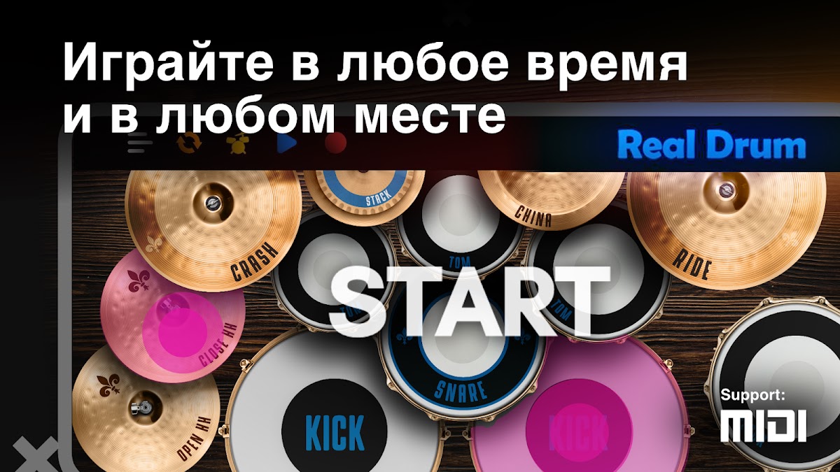 Без проблем! Real Drum предлагает разнообразный набор инструментов с высококачественным звучанием, позволяющий играть любую музыку по вашему желанию!