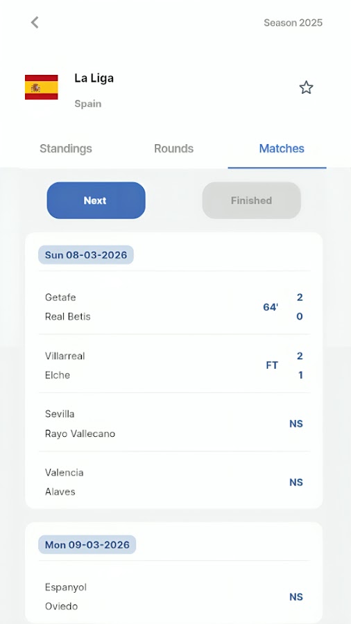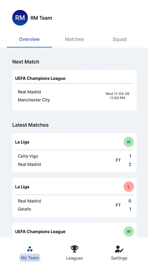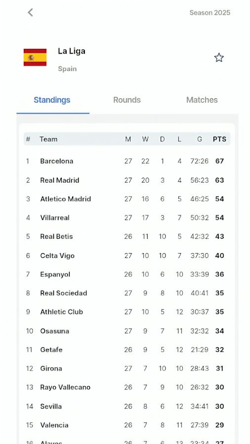 — Автоматическое обновление турнирной таблицы «Реал Мадрид» в испанской лиге.