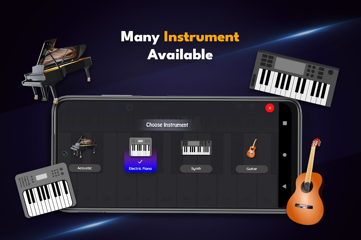 с беспрецедентным качеством звука, фортепиано Android приложение является идеальным бесплатно пианино научиться основам музыки или просто весело.