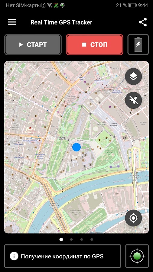 При включенной записи, приложение будет отправлять данные местоположения на наш сервис мониторинга, используя интернет соединение.