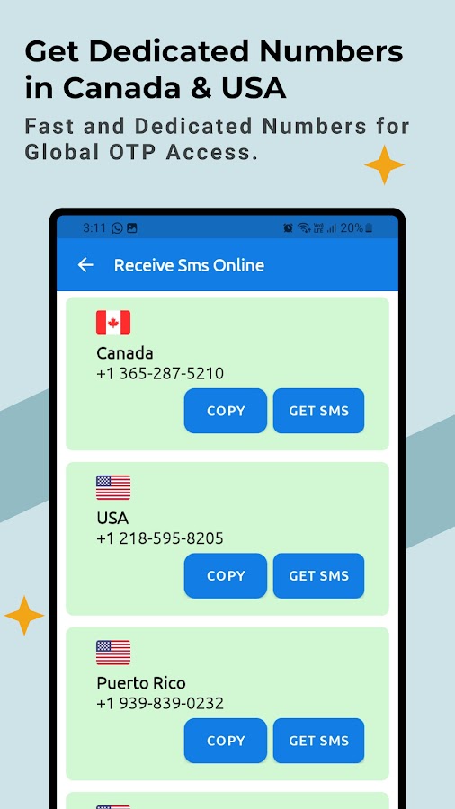Это приложение для приема смс онлайн по всей стране, предоставляющее номера для временного использования для получения онлайн-сообщений, кодов и подтверждения реального номера со всего мира. Вы можете бесплатно получить приложение поставщика виртуальных временных номеров без ограничений для получения SMS при регистрации на любых веб-сайтах. У вас может быть одноразовый номер телефона в нескольких странах для получения онлайн-сообщений. виртуальный номер обновляет предоставленный им телефон