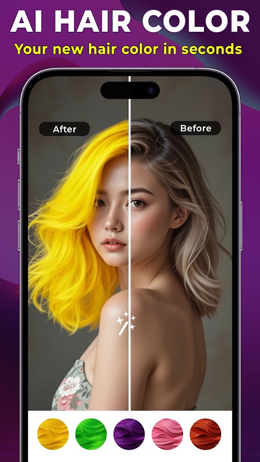 Улучшите свой стиль одним касанием! AI Hair Color Photo Editor — это лучшее приложение для преображения волос — ваш личный виртуальный салон для веселья и легкой смены стиля. Измените цвет волос за считанные секунды и попробуйте новые модные прически, и все это с реалистичными результатами. Почувствуйте атмосферу профессионального парикмахерского салона прямо со своего устройства!