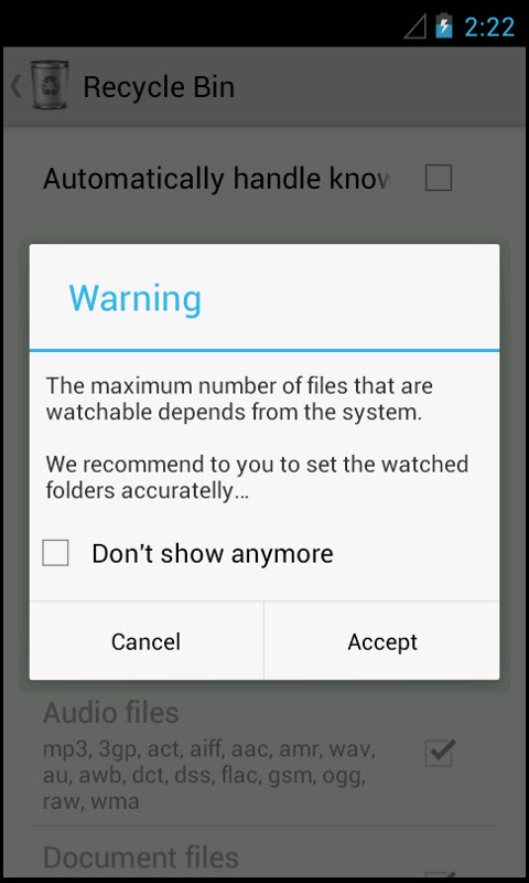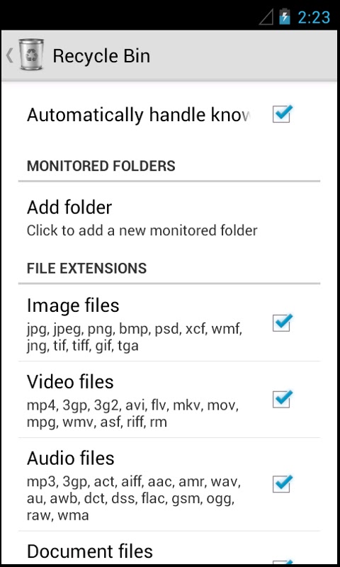 Это приложение реализует Корзину (также известную как Корзина) для Android и работает с большинством сторонних исследователей файлов, но не может помочь нам восстановить файлы, удаленные ранее для установки и настройки приложения.