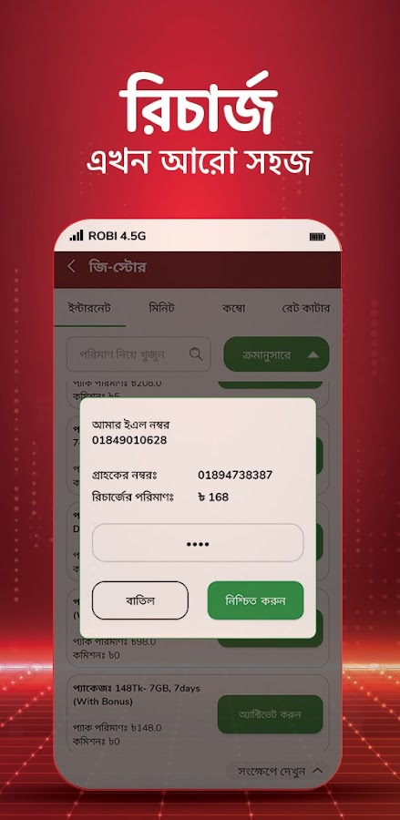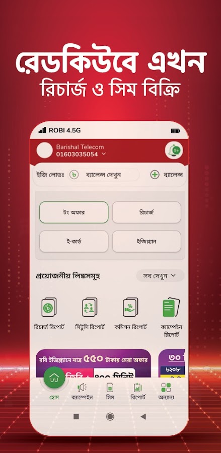 • রিচার্জ: সহজেই আপনার গ্রাহকদের মোবাইল অ্যাকা উন্ট রিচার্জ করুন।
