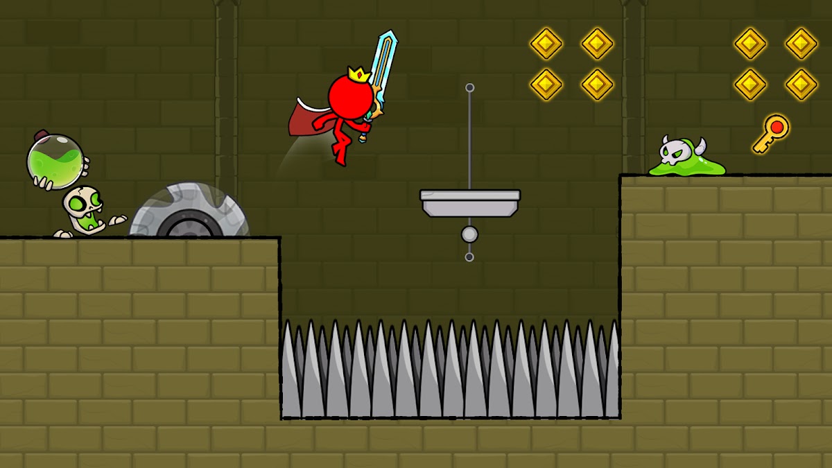 ⚔️ Используйте кнопку, чтобы двигаться, прыгать и сражаться. Красный мальчику предстоит преодолеть множество препятствий: отравленную воду, врагов…