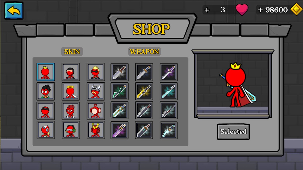⚔️ Соберите как можно больше золота в своем приключении на палке, чтобы разблокировать синий красный скин и купить дополнительные предметы в магазине.