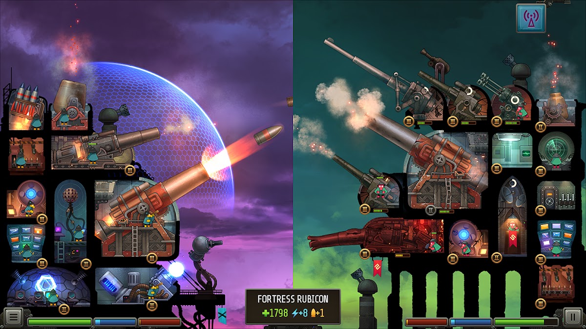 Изменяйте и контролируйте свой форт. Наращивайте и модернизируйте арсенал вооружений и служебных сооружений, затем размещайте их в отсеках своего форта.